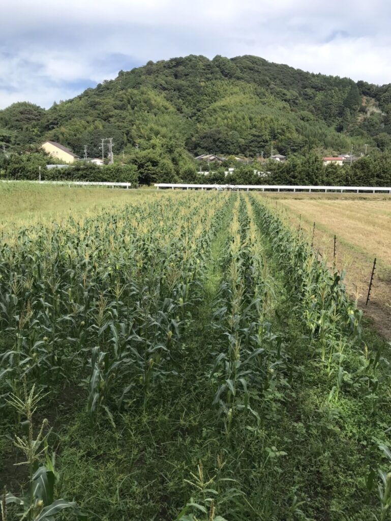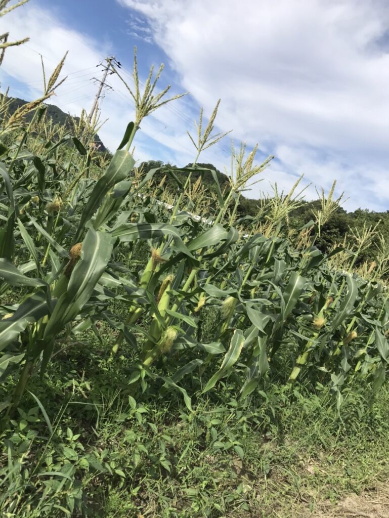 今回はマルチといって草抑えのシートを使わずやりました。案の定草がボーボーです。これは想定内。だけどもっとやりようがありましたね。ただマルチを使っていたらマルチ下の地中の温度が上昇して40度以上になっていたでしょう。おそらくトウモロコシはダメになっていたと思います。ニュースで夏野菜がマルチで温度上昇でダメになって困ってる農家さんが出てました。その点は防げたので良かったです。